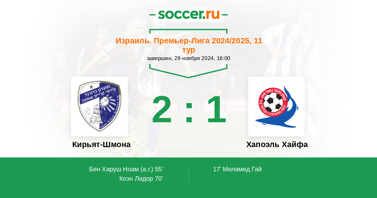 Протокол матча Кирьят-Шмона против Хапоэль Хайфа