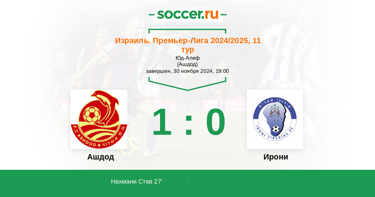27' (1:0) Нахмани Став (8) (E. Mamatah)