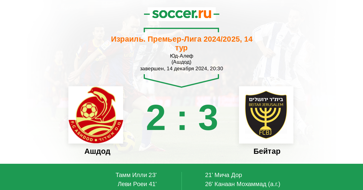 Протокол матча Ашдод против Бейтар