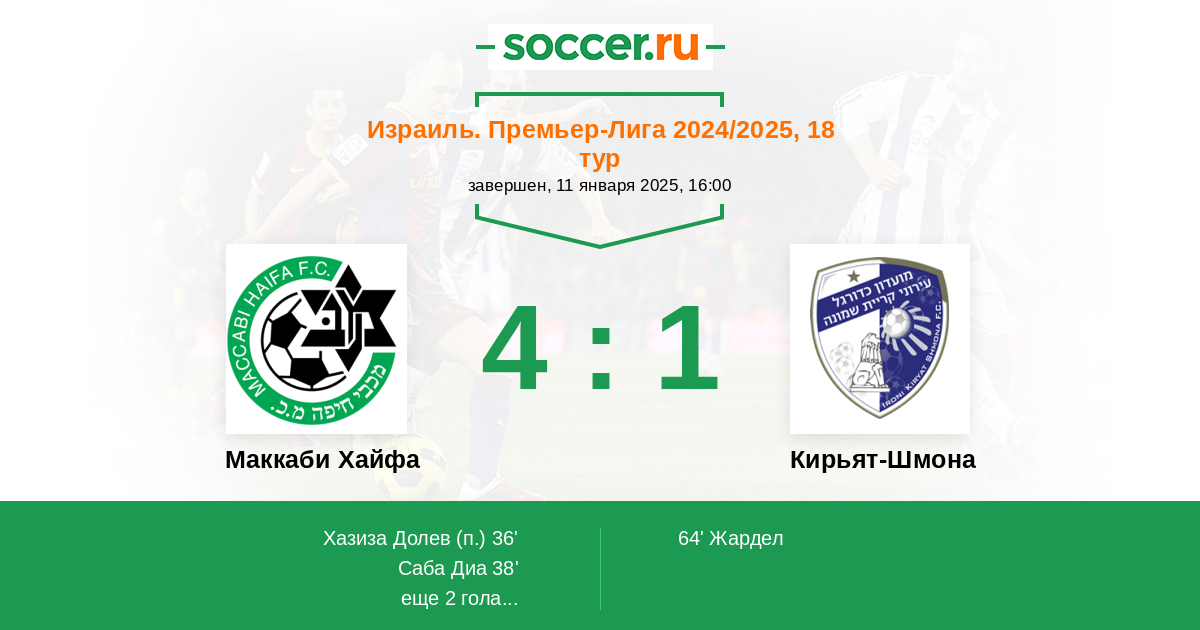 Протокол матча Маккаби Хайфа против Кирьят-Шмона