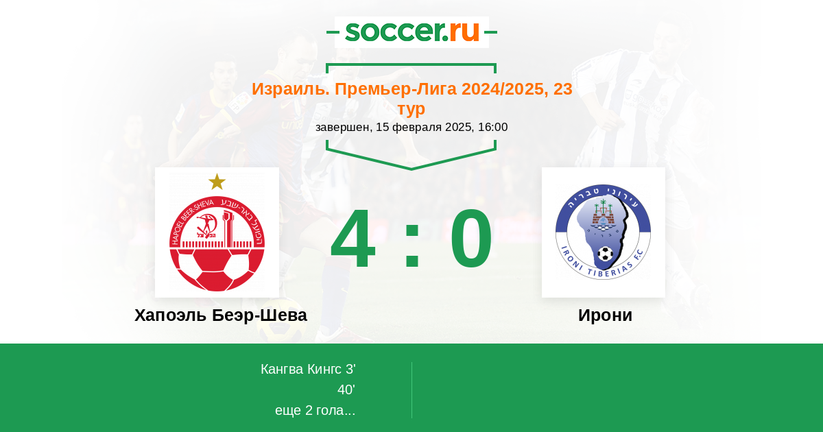Протокол матча Хапоэль Беэр-Шева против Ирони