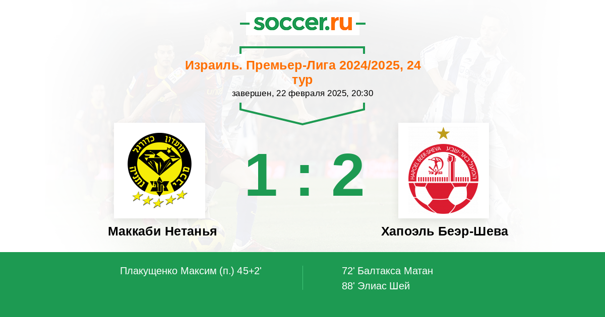 Протокол матча Маккаби Нетанья против Хапоэль Беэр-Шева