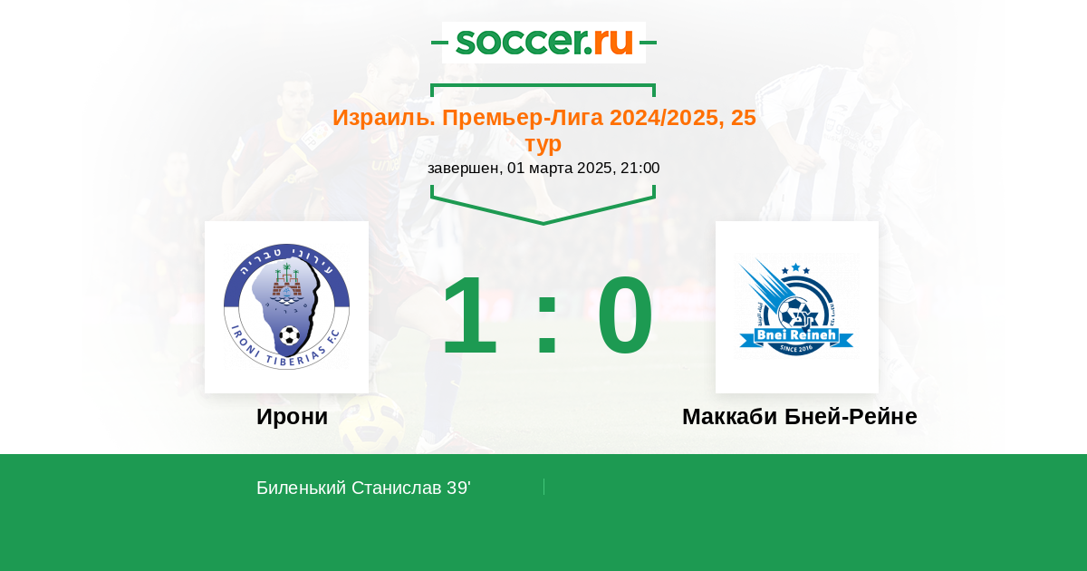 Протокол матча Ирони против Маккаби Бней-Рейне