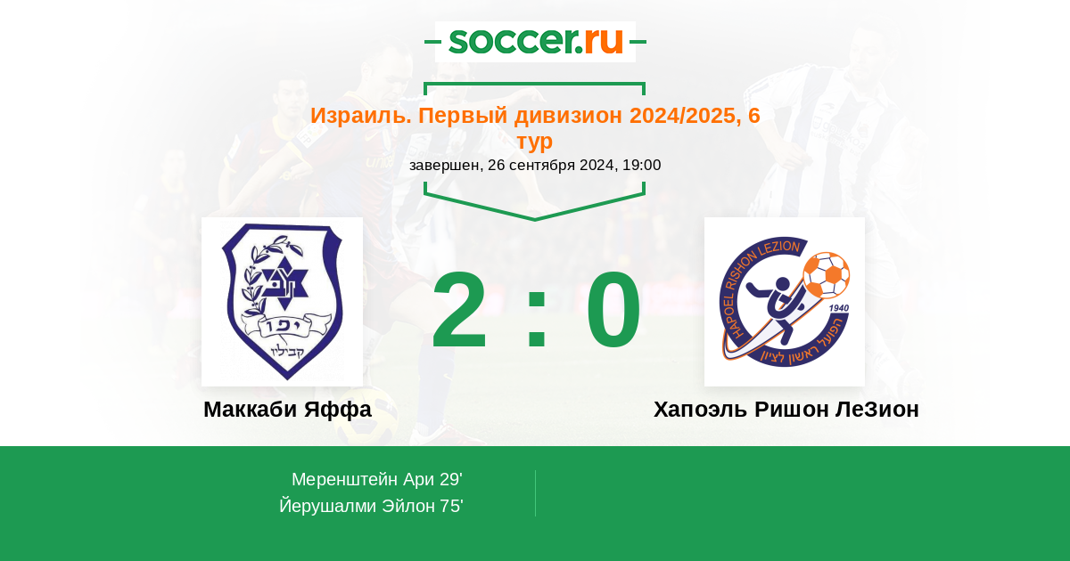 Протокол матча Маккаби Яффа против Хапоэль Ришон ЛеЗион