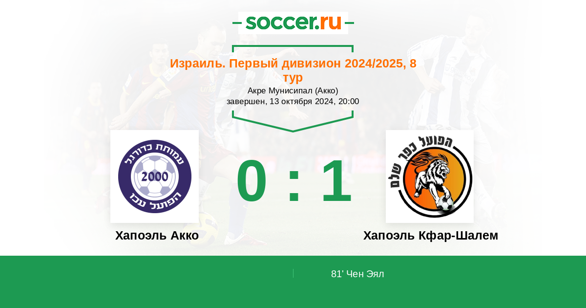 Протокол матча Хапоэль Акко против Хапоэль Кфар-Шалем