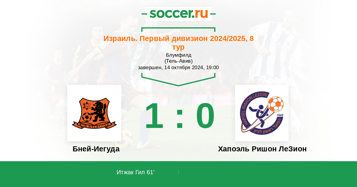 Протокол матча Бней-Иегуда против Хапоэль Ришон ЛеЗион