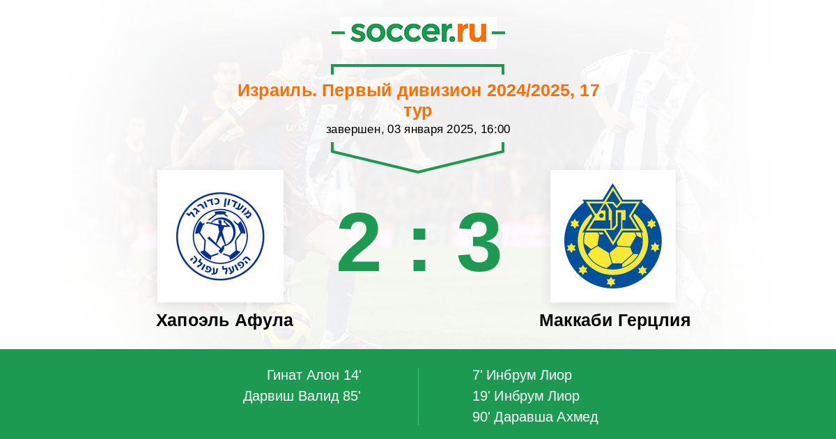 Протокол матча Хапоэль Афула против Маккаби Герцлия
