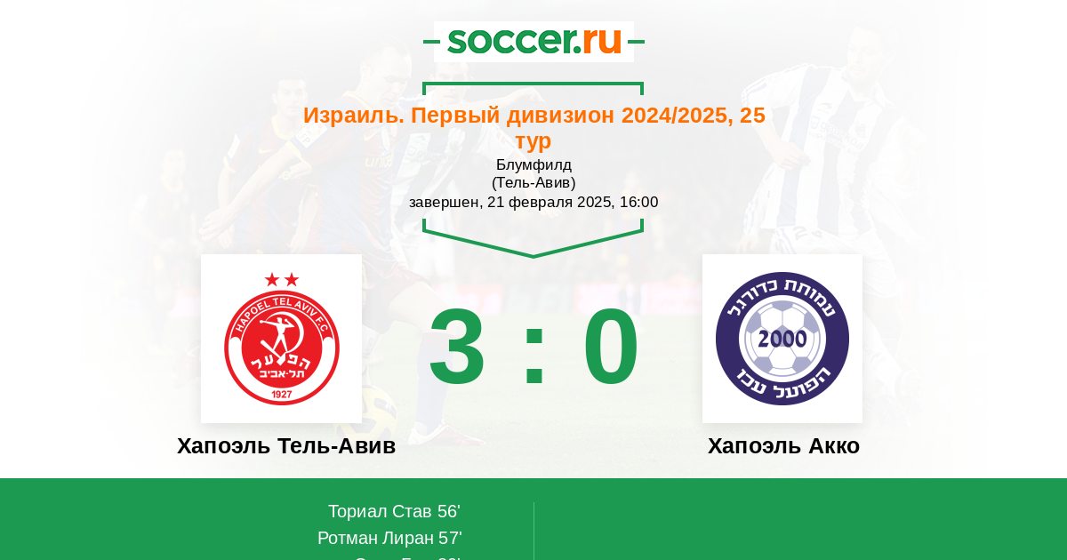 Протокол матча Хапоэль Тель-Авив против Хапоэль Акко