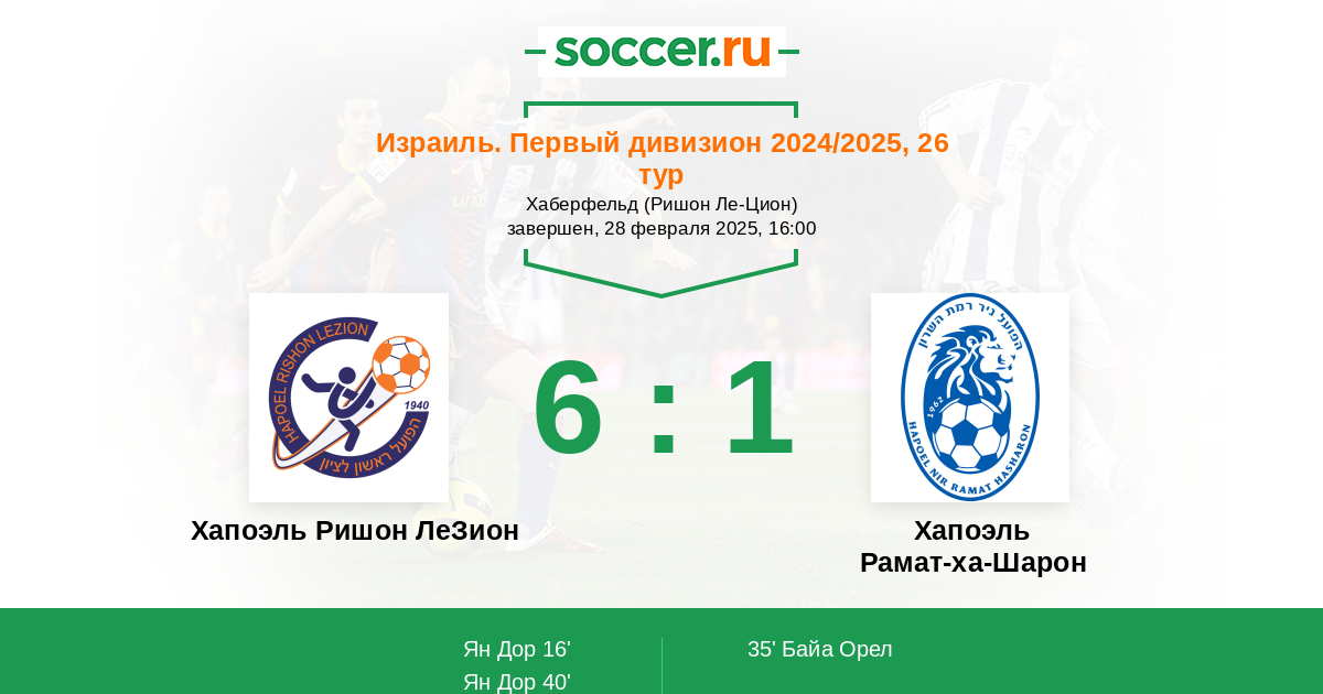 Протокол матча Хапоэль Ришон ЛеЗион против Хапоэль Рамат-ха-Шарон