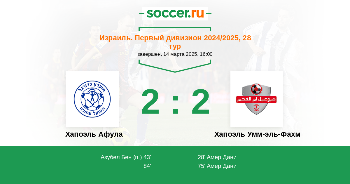 Протокол матча Хапоэль Афула против Хапоэль Умм-эль-Фахм