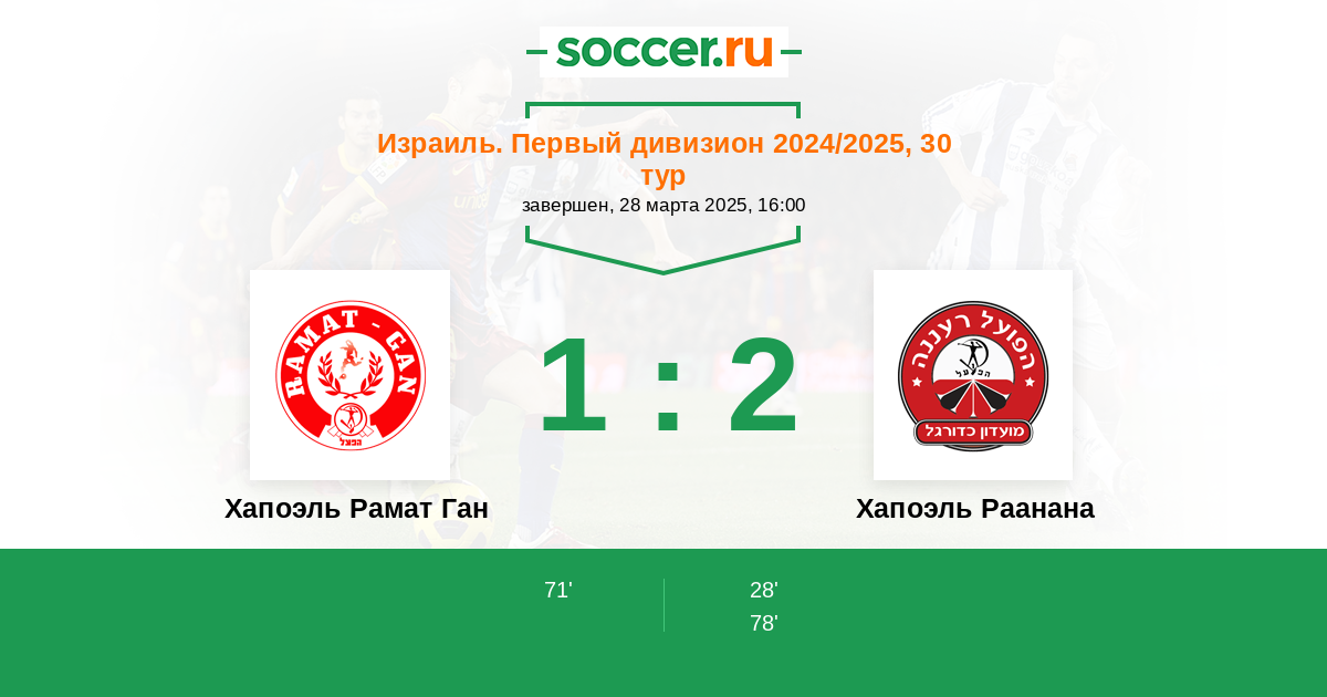 Протокол матча Хапоэль Рамат Ган против Хапоэль Раанана