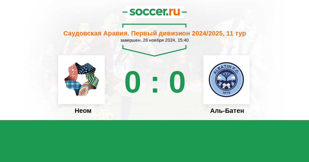 Лидер первенства Неом выглядит намного мощнее и мастеровитее соперников, должен на классе одержать победу на своём поле над гостевым коллективом и вряд ли не забьёт в ворота Аль-Батена во втором тайме