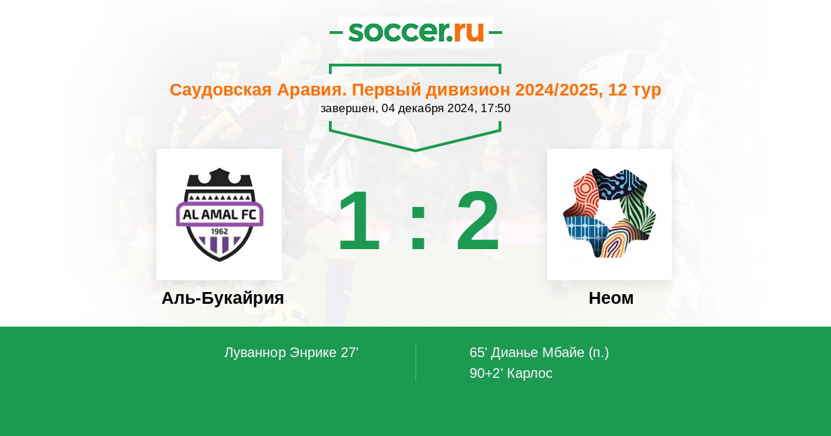 Протокол матча Аль-Букайрия против Неом