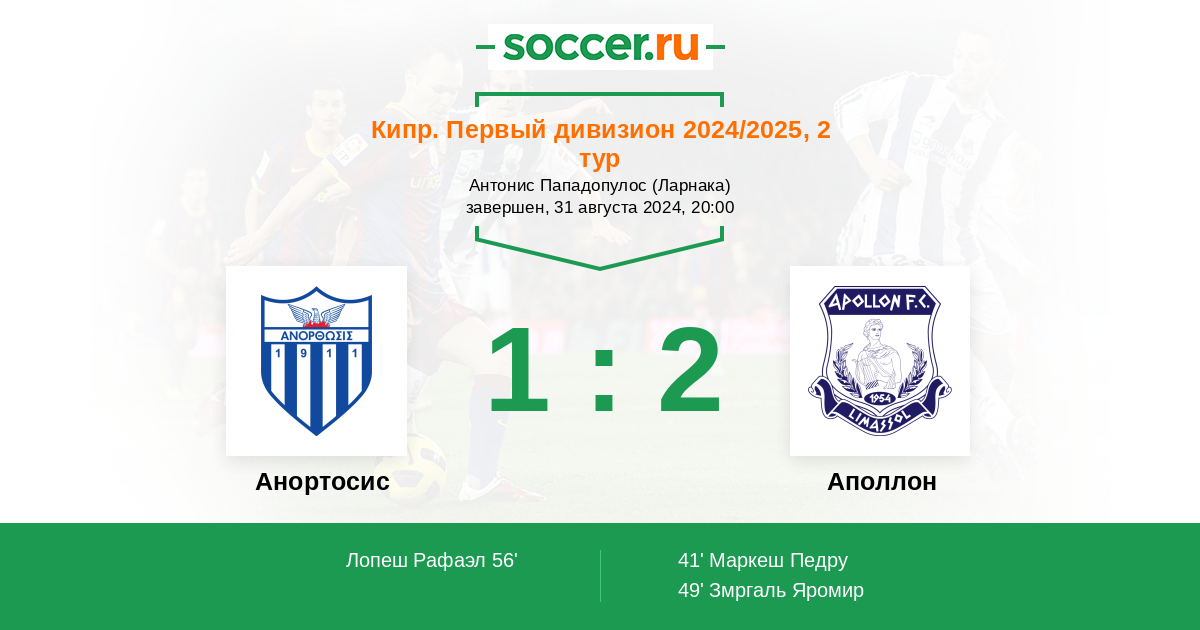 Протокол матча Анортосис против Аполлон
