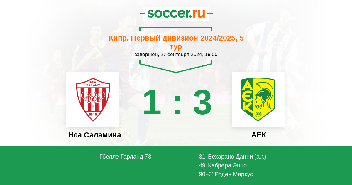 Протокол матча Неа Саламина против АЕК