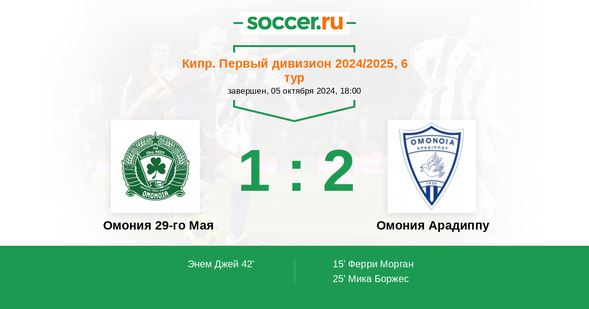 Протокол матча Омония 29-го Мая против Омония Арадиппу