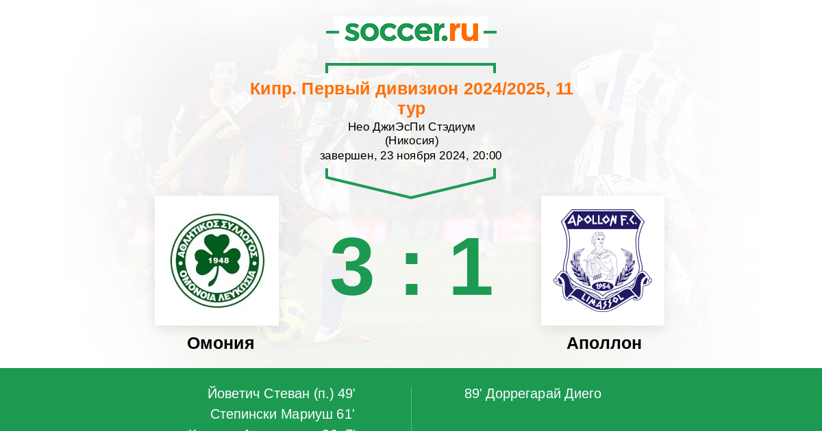 Протокол матча Омония против Аполлон