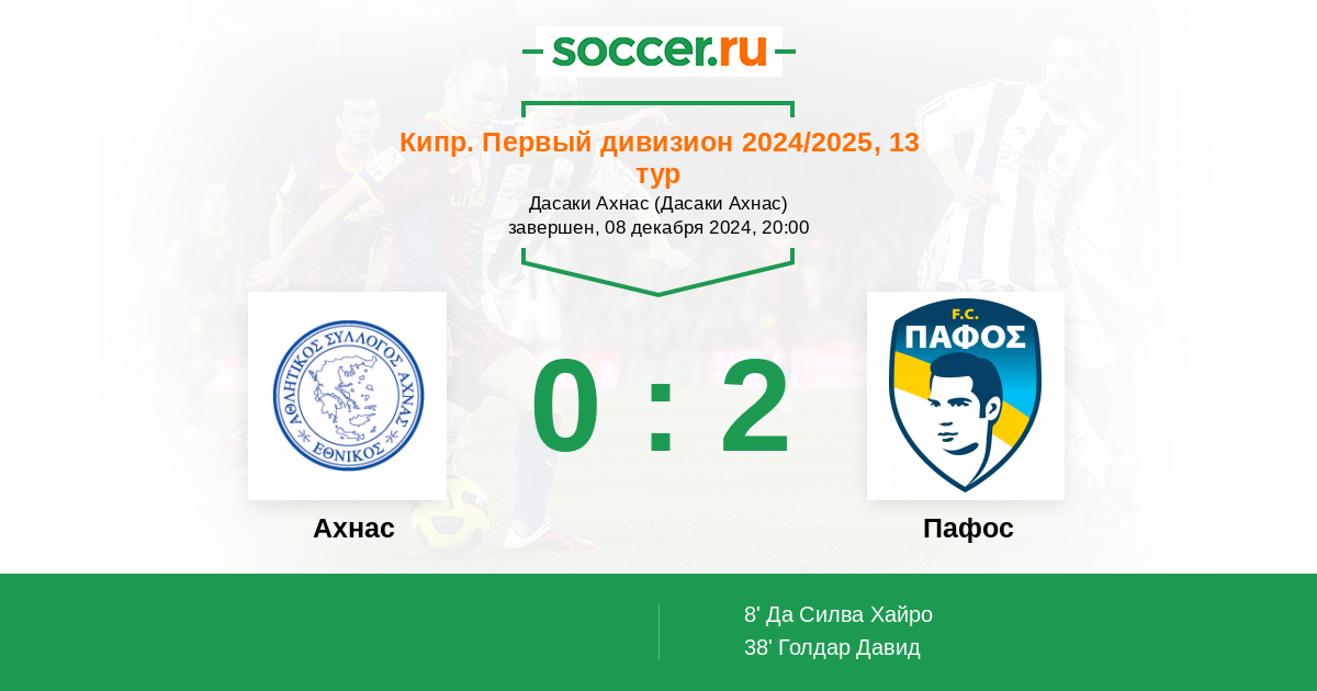 Протокол матча Ахнас против Пафос