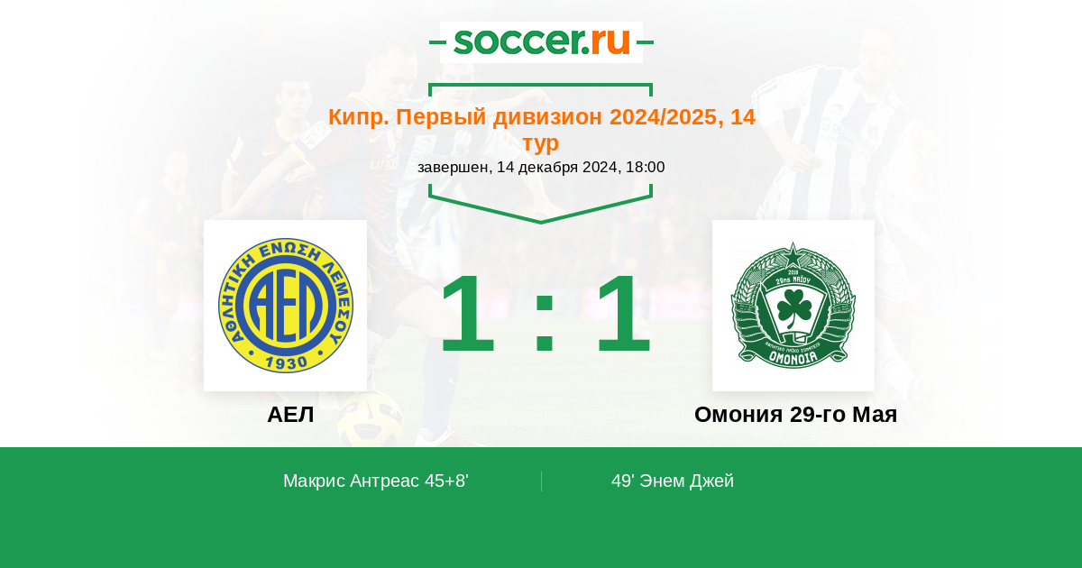 45+8' (1:0) Макрис Антреас (33)