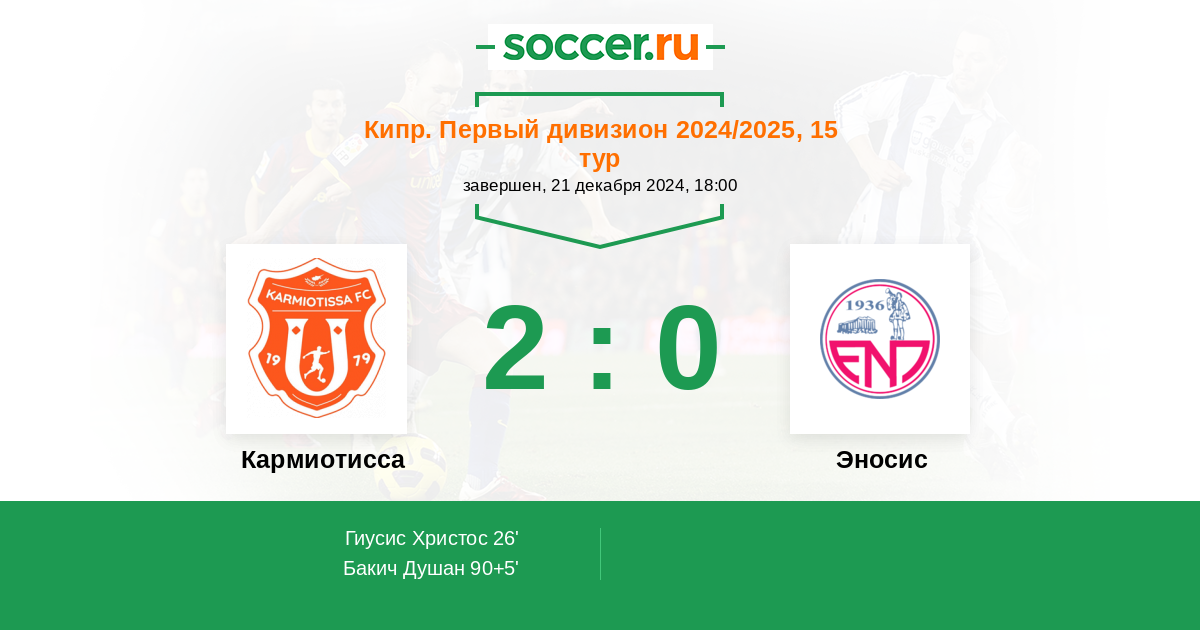 Протокол матча Кармиотисса против Эносис