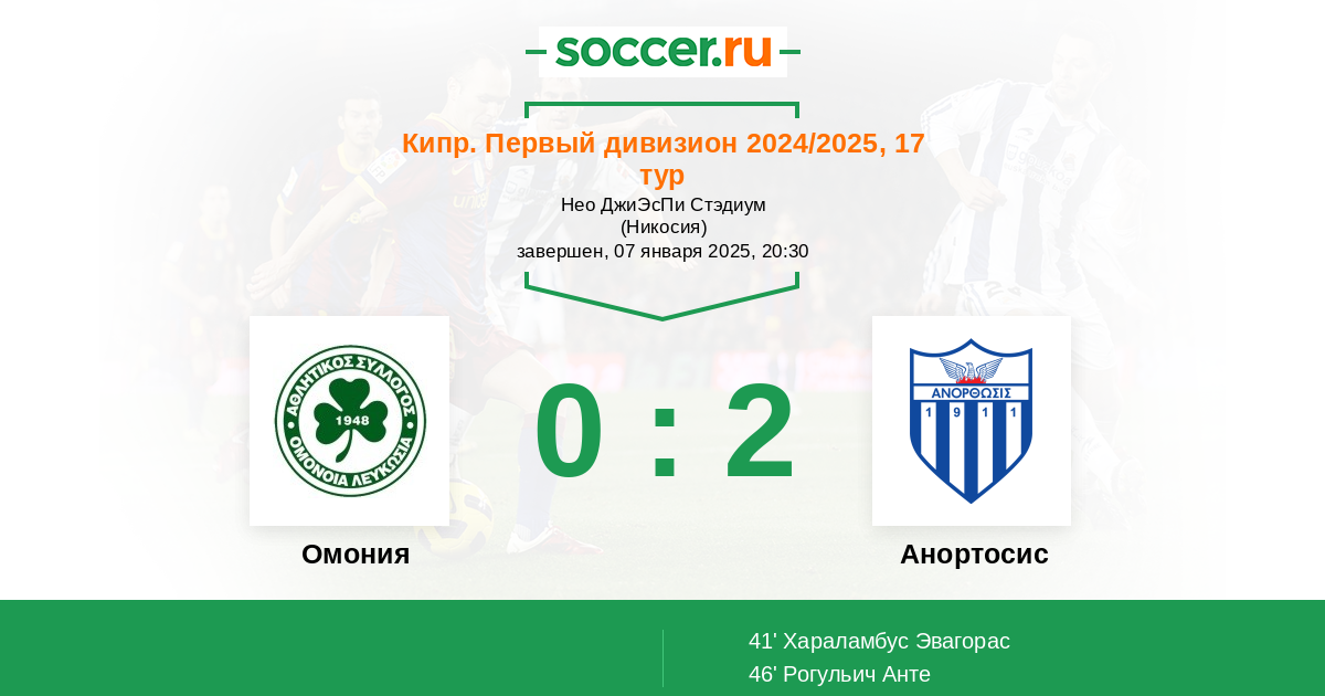 Протокол матча Омония против Анортосис
