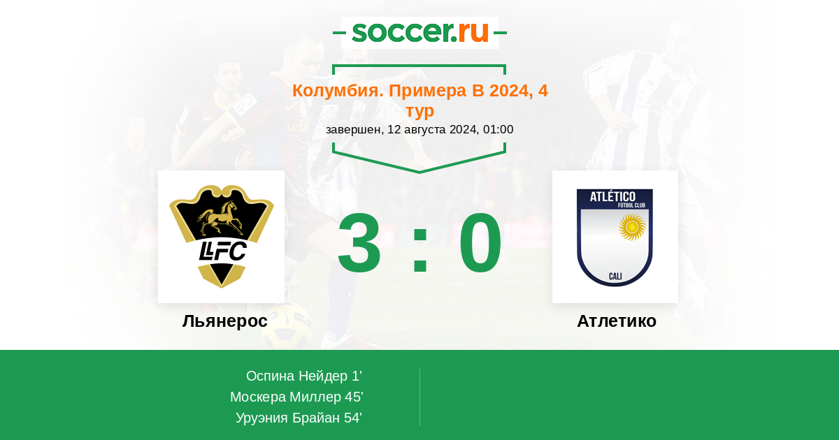 Протокол матча Льянерос против Атлетико Кали