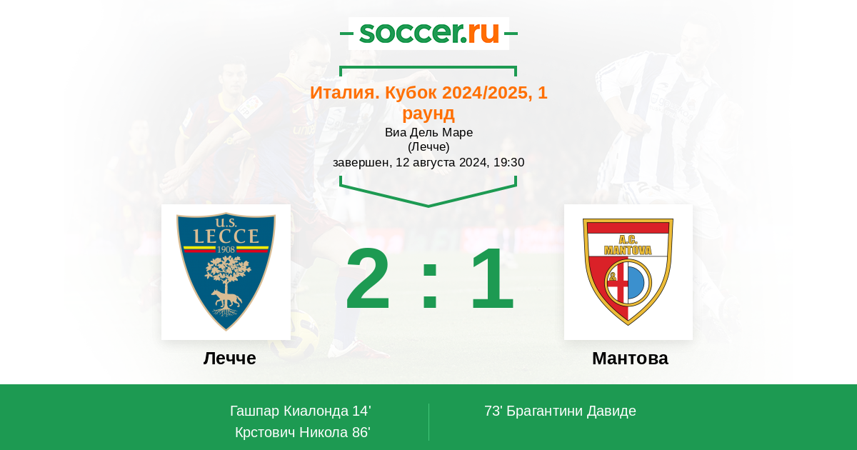 Протокол матча Лечче против Мантова