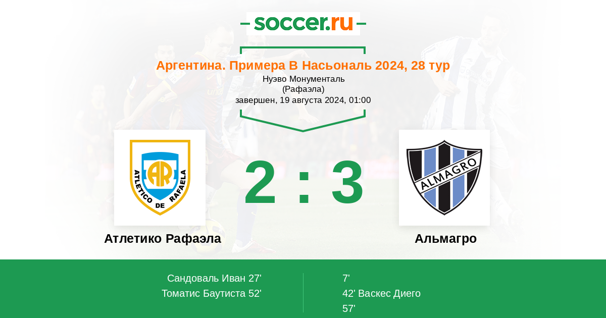 Протокол матча Атлетико Рафаэла против Альмагро