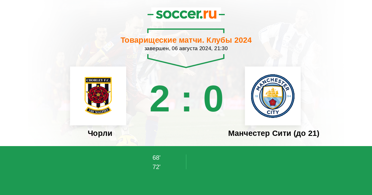 Протокол матча Чорли против Манчестер Сити (до 21)