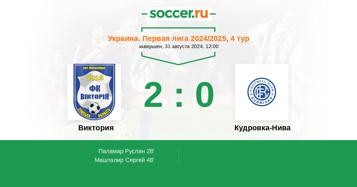 Протокол матча Виктория против Кудровка-Нива