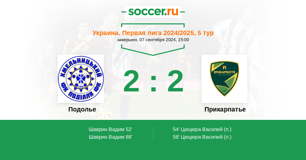 Протокол матча Подолье против Прикарпатье
