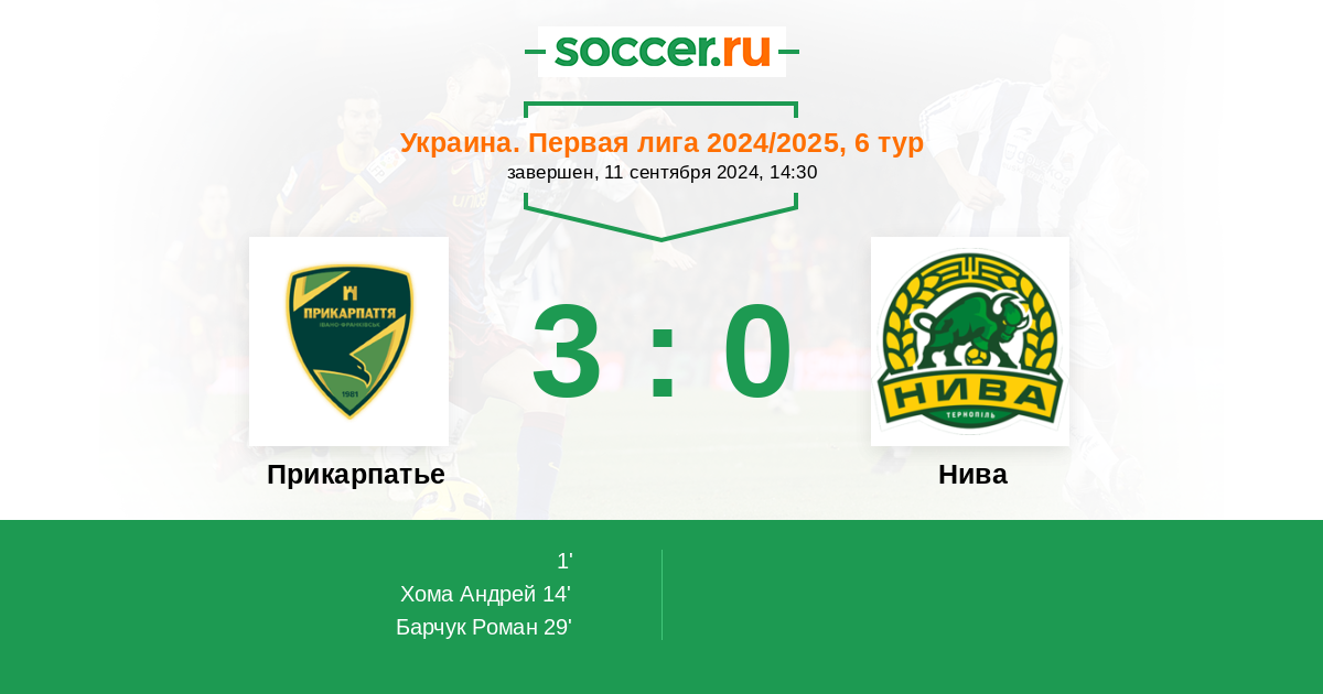 Протокол матча Прикарпатье против Нива
