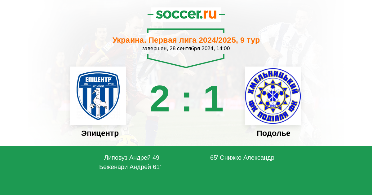 Протокол матча Эпицентр против Подолье