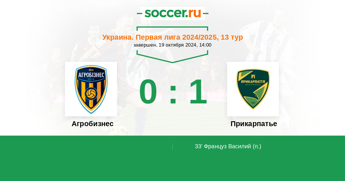 Протокол матча Агробизнес против Прикарпатье