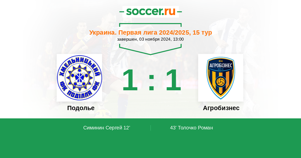 Протокол матча Подолье против Агробизнес