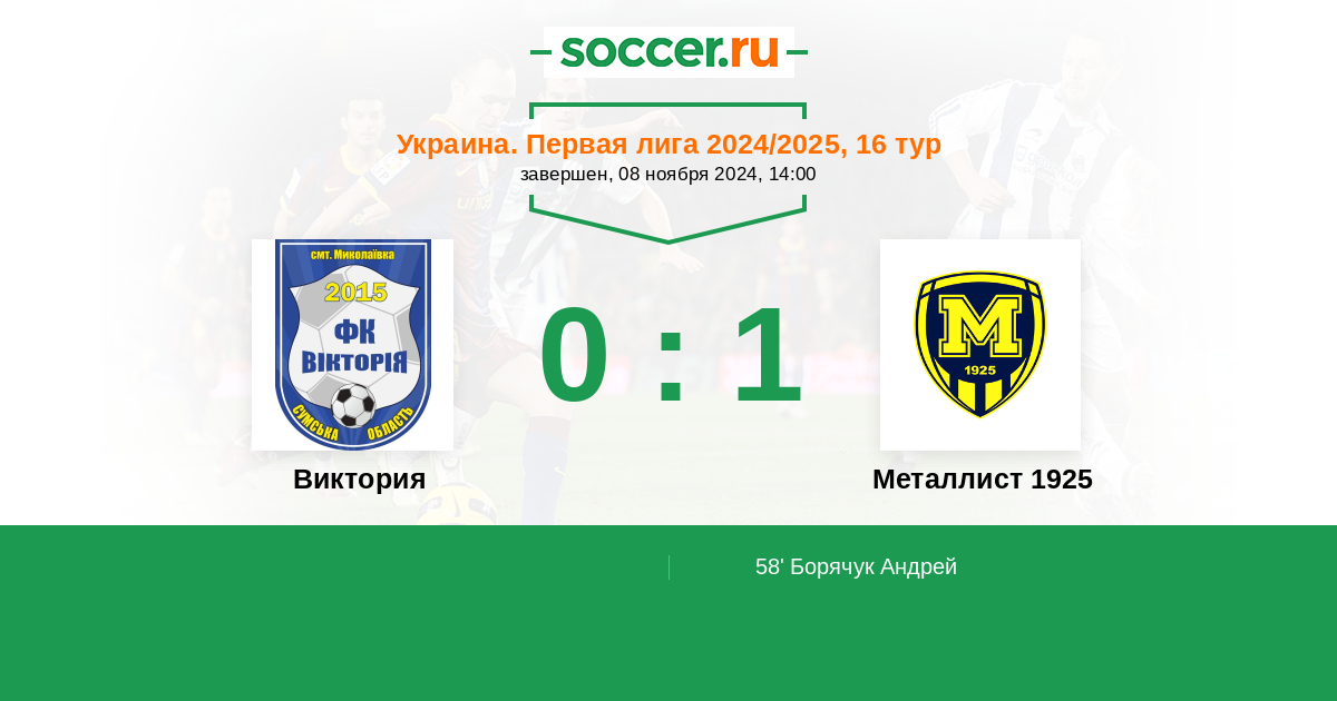 Протокол матча Виктория против Металлист 1925