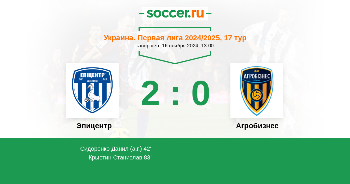 Протокол матча Эпицентр против Агробизнес