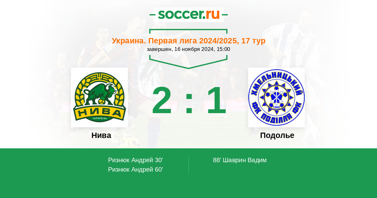 Протокол матча Нива против Подолье