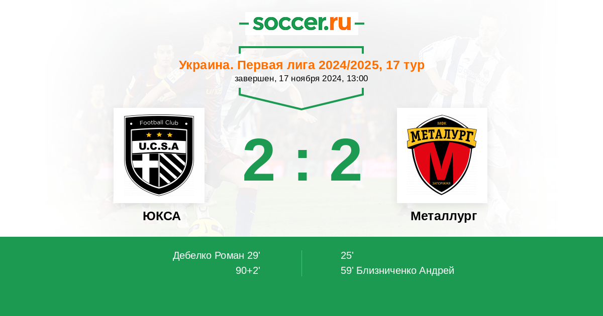 Протокол матча ЮКСА против Металлург