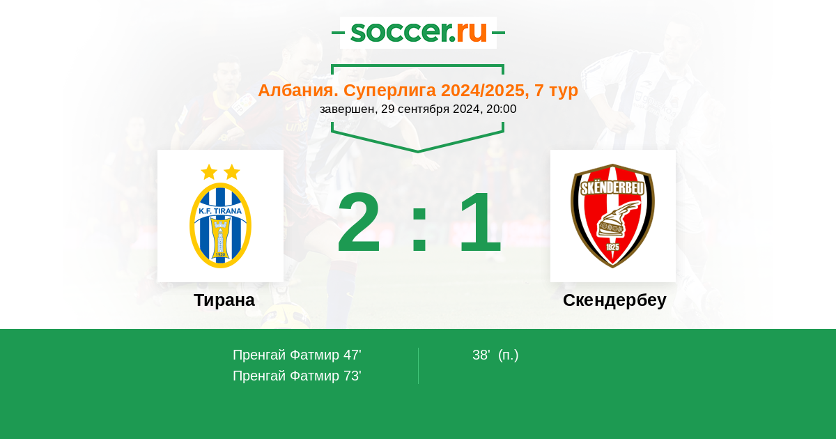 Протокол матча Тирана против Скендербеу