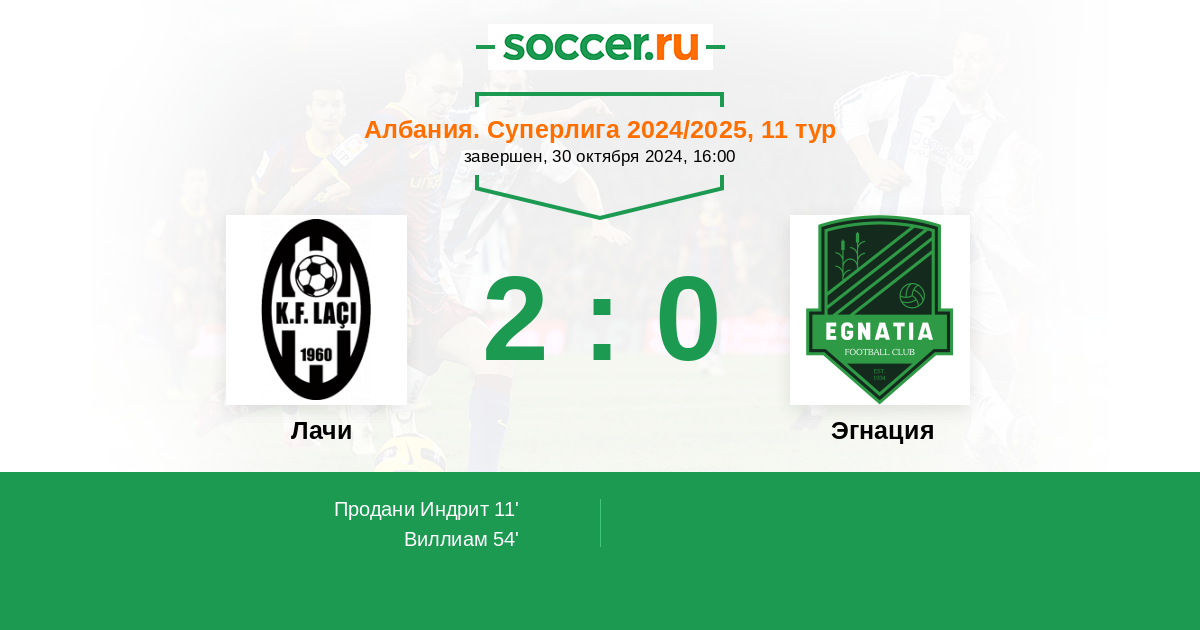 Протокол матча Лачи против Эгнация