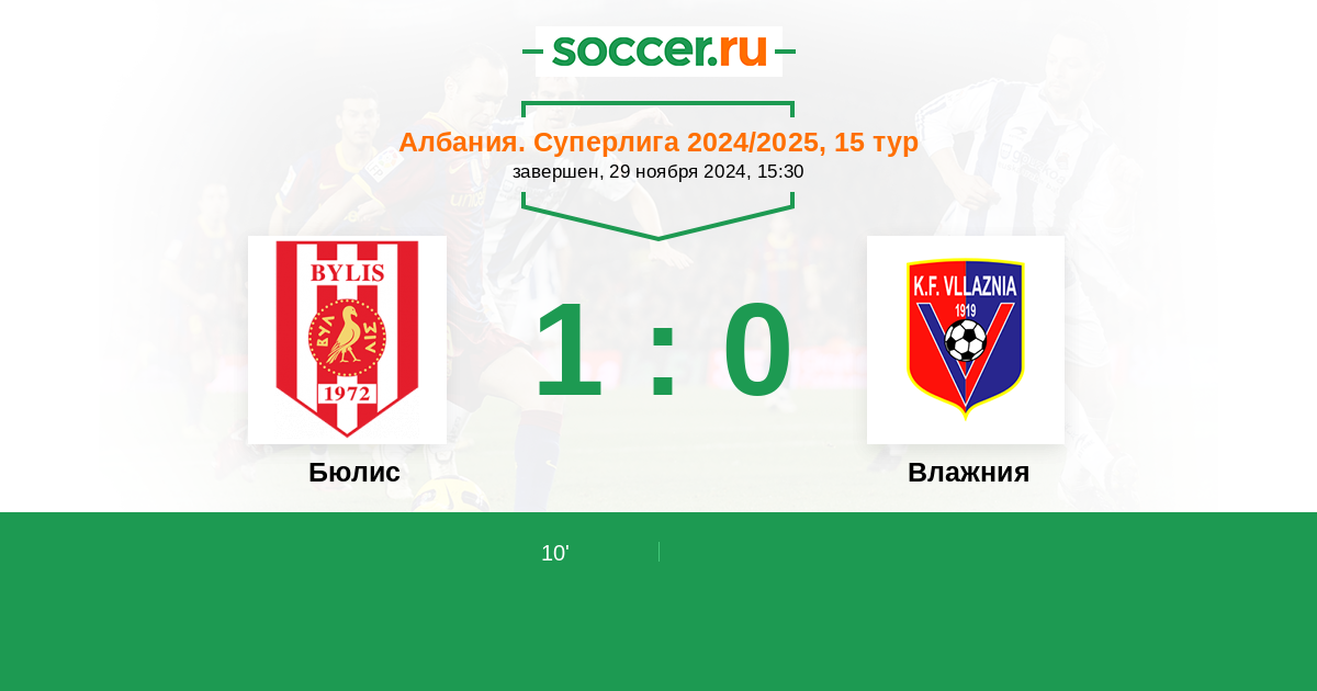 Протокол матча Бюлис против Влажния