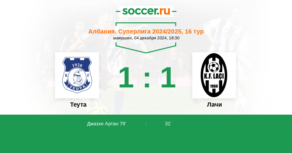 Протокол матча Теута против Лачи