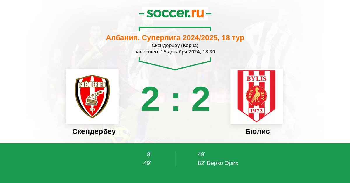 Протокол матча Скендербеу против Бюлис