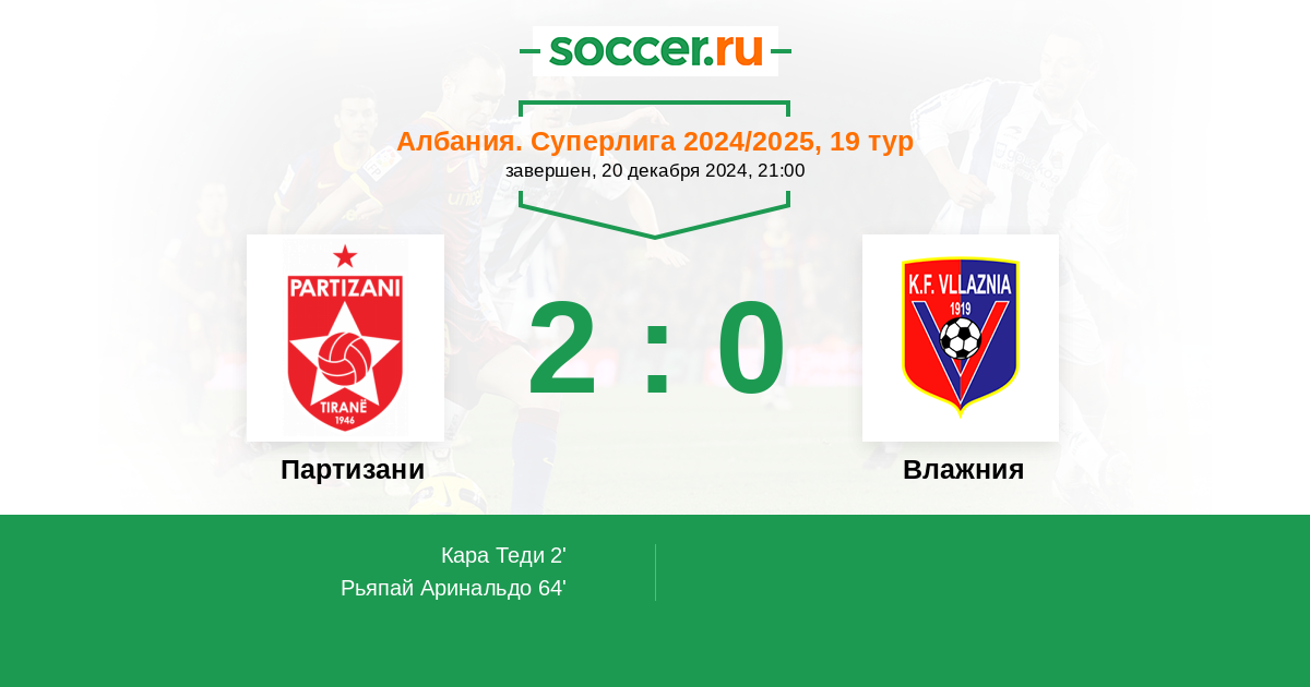 Протокол матча Партизани против Влажния