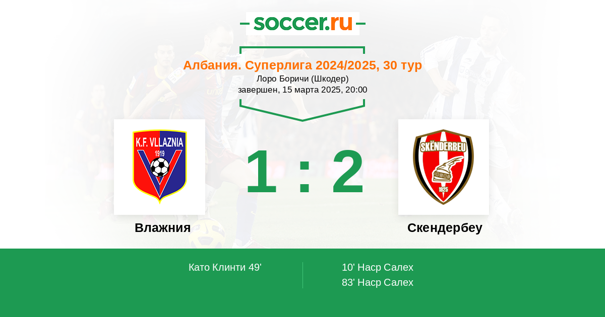 Протокол матча Влажния против Скендербеу