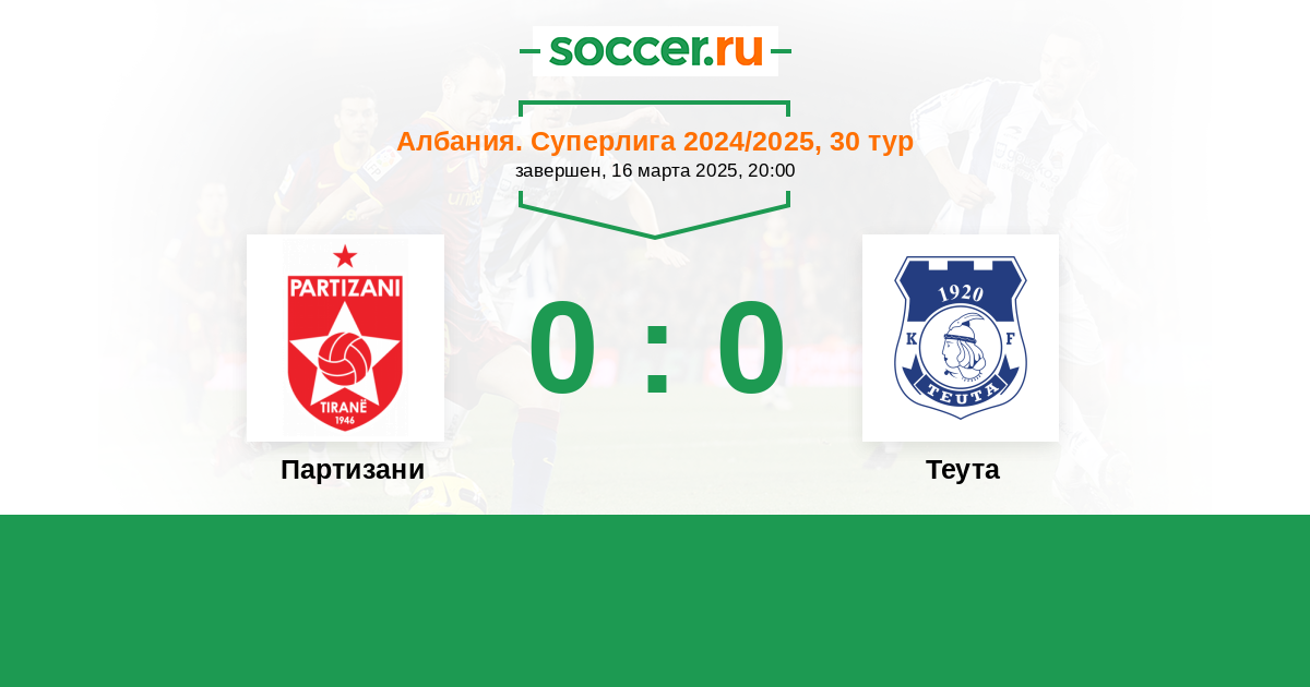 Протокол матча Партизани против Теута