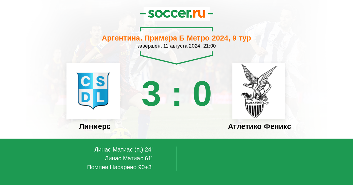 Протокол матча Линиерс против Атлетико Феникс