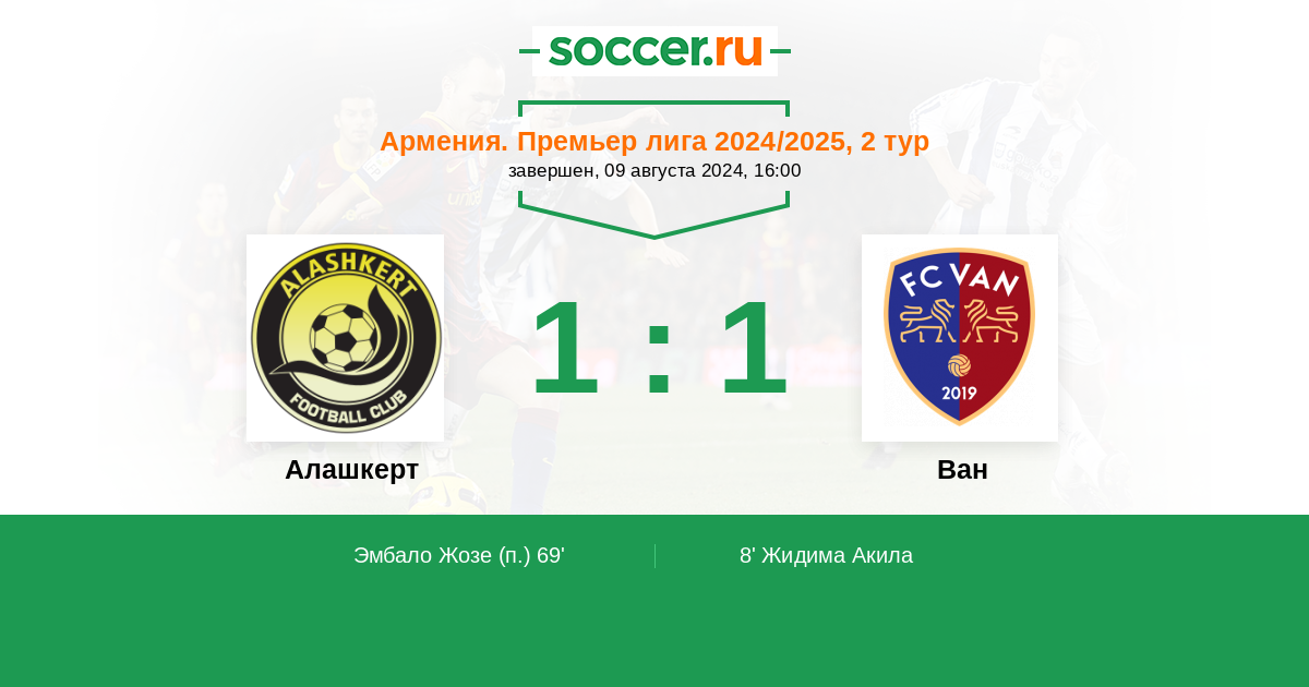 Протокол матча Алашкерт против Ван