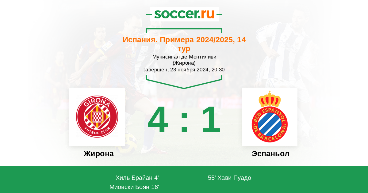 Протокол матча Жирона против Эспаньол